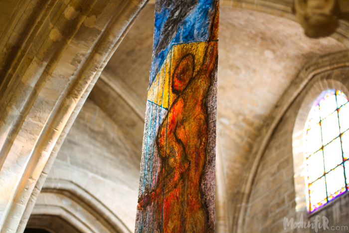 W Auvers-sur-Oise znajduje się również piękny kościół z XI wieku. Niestety nie dałam rady zrobić mu dobrego zdjęcia z zewnątrz (fasada i dach są w remoncie), ale na pewno kojarzycie go z obrazu Van Gogha. Mieliśmy szczęście, bo kościół był otwarty i dzięki temu mogliśmy zobaczyć, że jego wnętrze jest równie piękne i imponujące. Słoneczny dzień zaczarował znajdujące się w nim witraże…